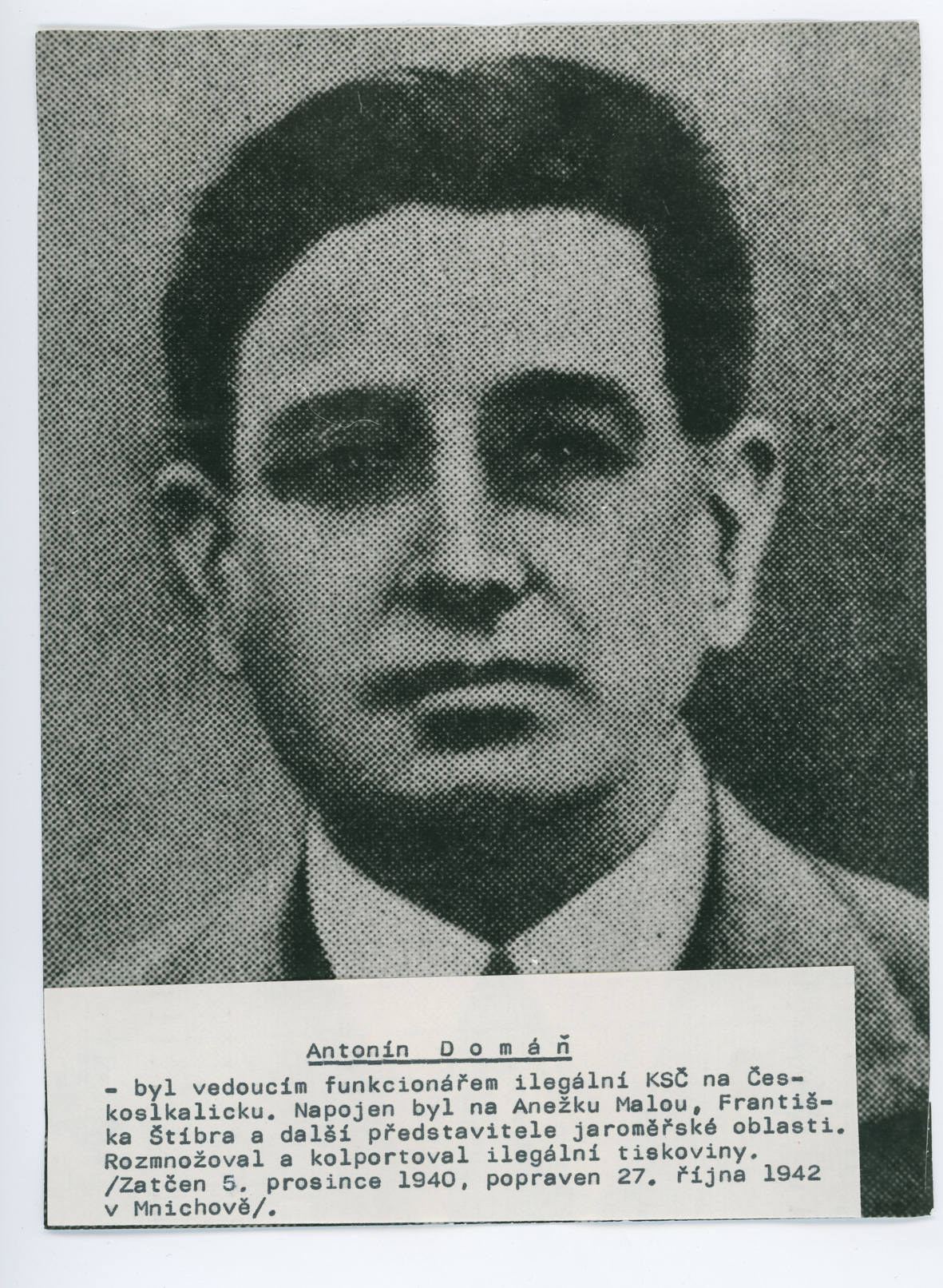 Domáň war von Beruf Textilarbeiter und beteiligte sich als Mitglied der Bezirksleitung in Zlic am Widerstand der Kommunistischen Partei der Tschechoslowakei (KPČ) in Königgrätz (Hradec Králové). Die in der Illegalität arbeitende Partei versuchte neue Mitglieder zu werben und verbreitete unter anderem verbotene Schriften. Domáň wurde am 11. Juni 1942 durch den Volksgerichtshof wegen „Hochverrat“ zum Tode verurteilt und am 27. Oktober 1942 hingerichtet.