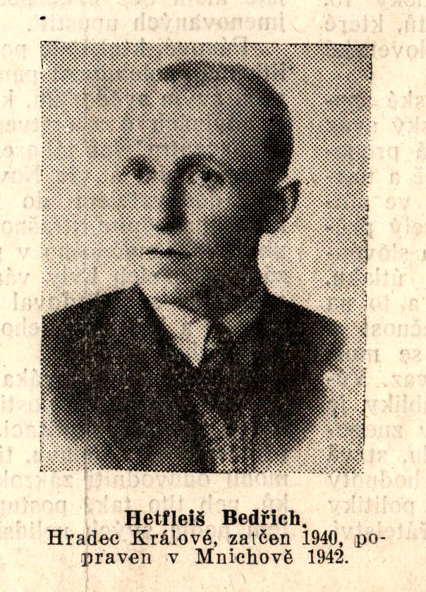 Hetfleiš war von Beruf Zuckerbäcker und leistete als Bezirksleiter Widerstand für die Kommunistische Partei der Tschechoslowakei (KPČ) in Königgrätz (Hradec Králové). Die in der Illegalität arbeitende Partei versuchte neue Mitglieder zu werben und verbreitete unter anderem verbotene Schriften. Hetfleiš wurde durch den Volksgerichtshof wegen „Hochverrat“ zum Tode verurteilt (Urteilsdatum unbekannt) und am 9. November 1942 hingerichtet.