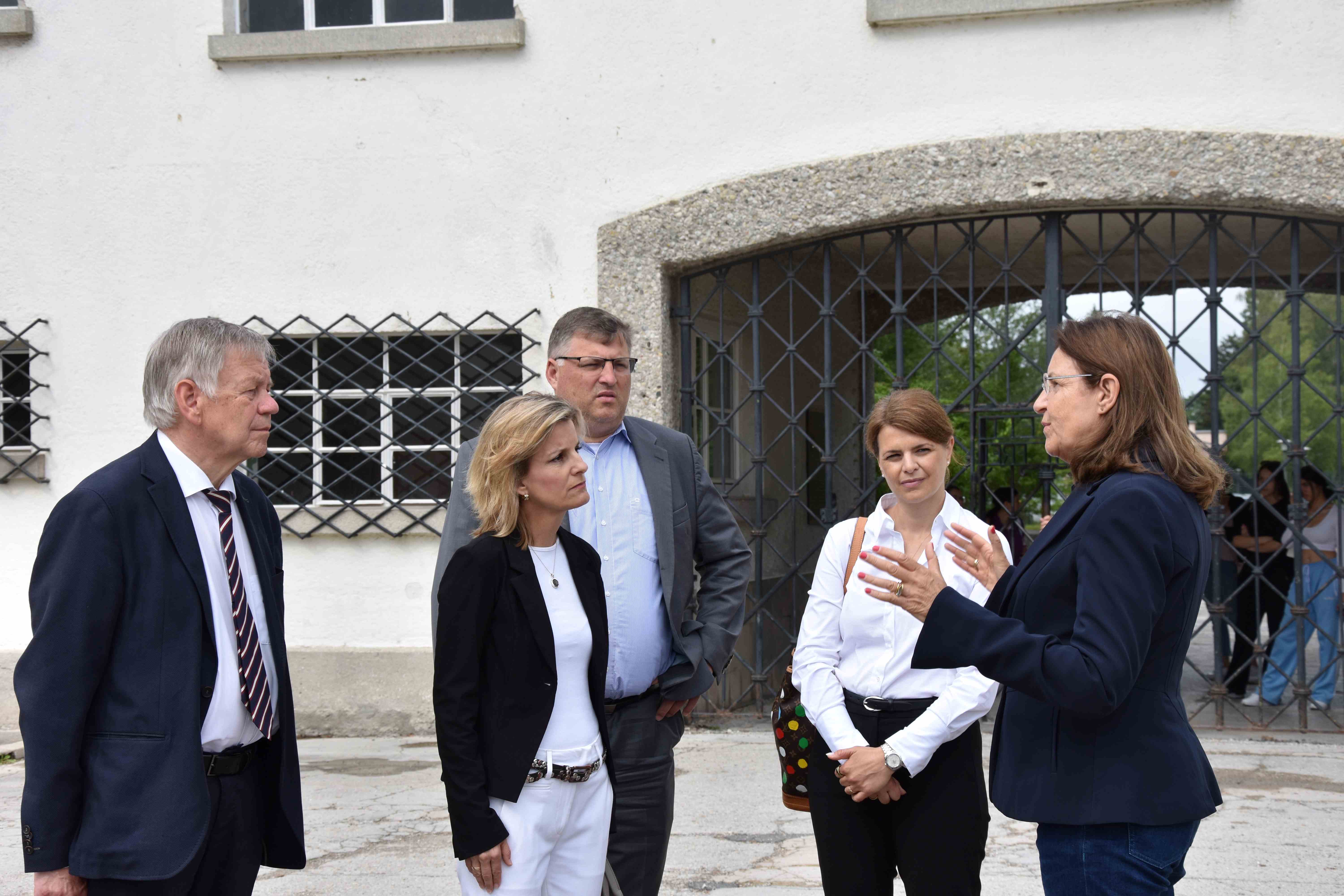 Empfangen wurde sie von Stiftungsdirektor Karl Freller, MdL und Dr. Gabriele Hammermann, Leiterin der KZ-Gedenkstätte Dachau. Begleitet wurde der Besuch von Katrin Staffler, MdB und dem Dachauer Landrat Stefan Löwl. Themen des Austausches waren die Arbeit der KZ-Gedenkstätte sowie die anstehende Neukonzeption.