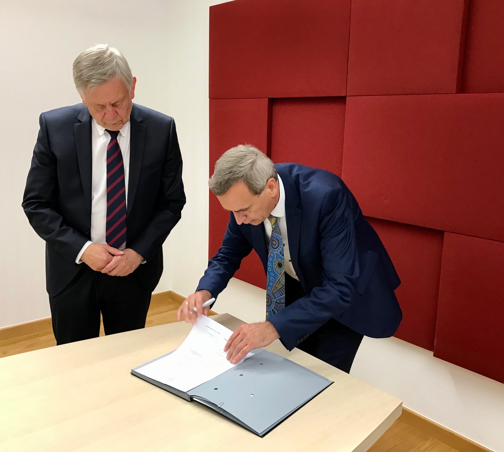 Anlässlich der Vertragsunterzeichnung für die pädagogische Stelle in der KZ-Gedenkstätte Flossenbürg trafen sich Karl Freller, Direktor der Stiftung Bayerische Gedenkstätten, und Oberkirchenrat Michael Martin, der in der Evangelisch-Lutherischen Kirche in Bayern für Ökumene, Mission, Partnerschaften und Entwicklungsfragen zuständig ist, gestern in München. Die Stiftung ist Trägerin der oberpfälzischen KZ-Gedenkstätte Flossenbürg, die in Deutschland zu den Gedenkstätten von nationaler und internationaler Bedeutung gehört. Die dort geplante pädagogische Stelle wird zu großen Teilen kirchlich finanziert. Die Stelle wird in Kürze bundesweit ausgeschrieben.