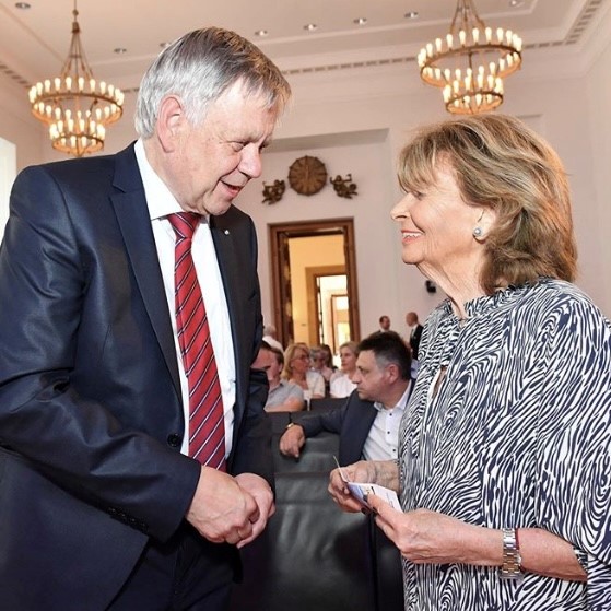Dr. h.c. mult. Charlotte Knobloch, Präsidentin der Israelitischen Kultusgemeinde München und Oberbayern, erhält den Bayerischen Verfassungsorden „für ihren herausragenden persönlichen und politischen Einsatz für die Interessen von Jüdinnen und Juden und für Versöhnung sowie gegen Antisemitismus und jede Art von Menschenfeindlichkeit.“ Stiftungsdirektor Freller sieht in Charlotte Knobloch „eine Weggefährtin in der Erinnerungsarbeit und maßgebliche Mitstreiterin im gemeinsamen Ziel des „Nie wieder!“ sowie „eine außergewöhnlich engagierte Versöhnerin“. Ihr Wirken wurde bis heute schon mit zahlreichen Ehrungen und Auszeichnungen gewürdigt: So erhielt die Ehrenbürgerin der Stadt München u.a. 2008 das Große Verdienstkreuz des Verdienstordens und 2010 zusätzlich das Große Verdienstkreuz mit Stern des Verdienstordens der Bundesrepublik Deutschland sowie 2022 die Insignien eines Commandeur de la Legion d’Honneur (franz. Ehrenlegion).