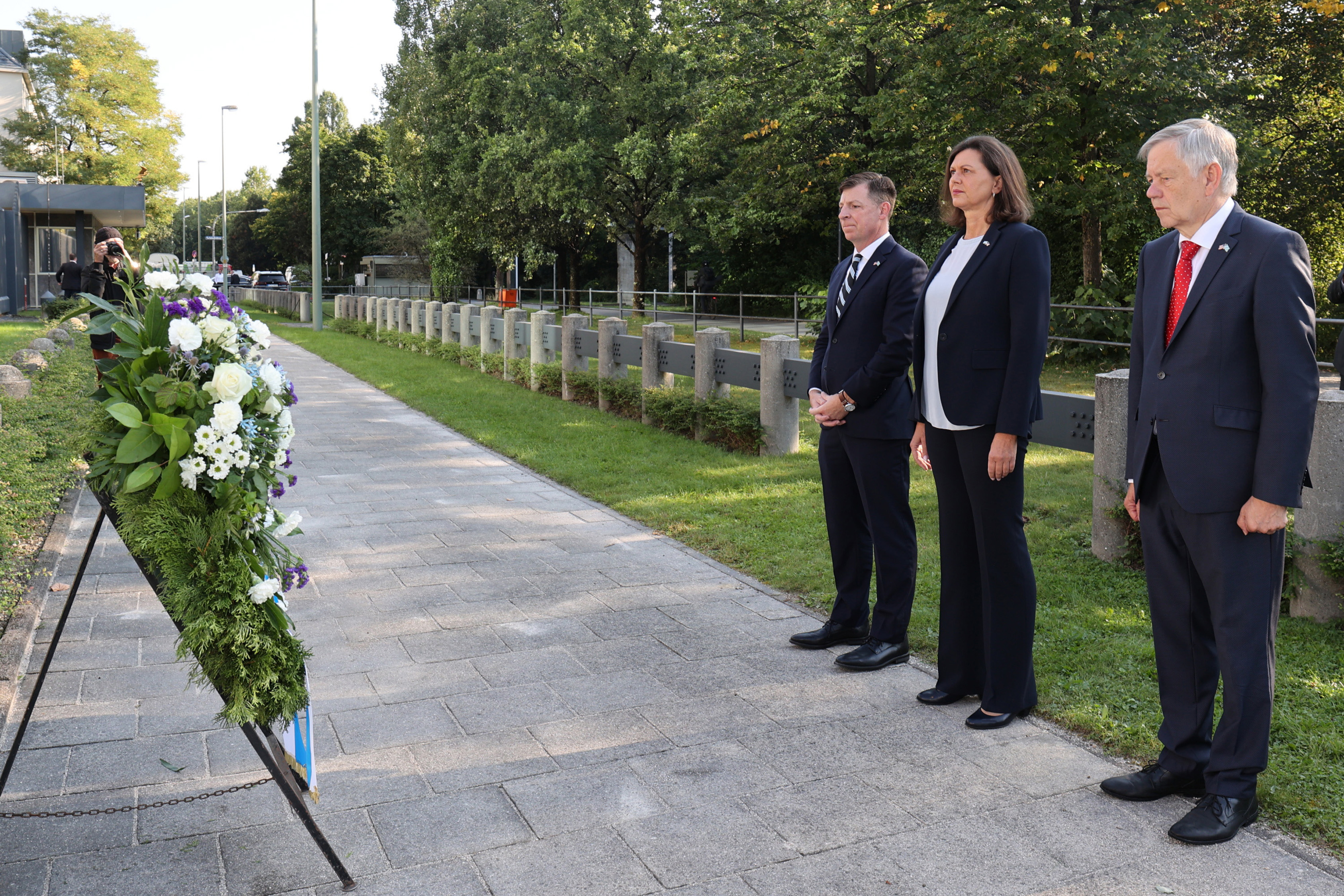 Landtagspräsidentin Ilse Aigner hatte für die Landesregierung einen Kranz am Zaun des US-Generalkonsulats niedergelegt. Der neue US-Generalkonsul in München, Timothy Liston, hatte die Bayerische Delegation begrüßt.