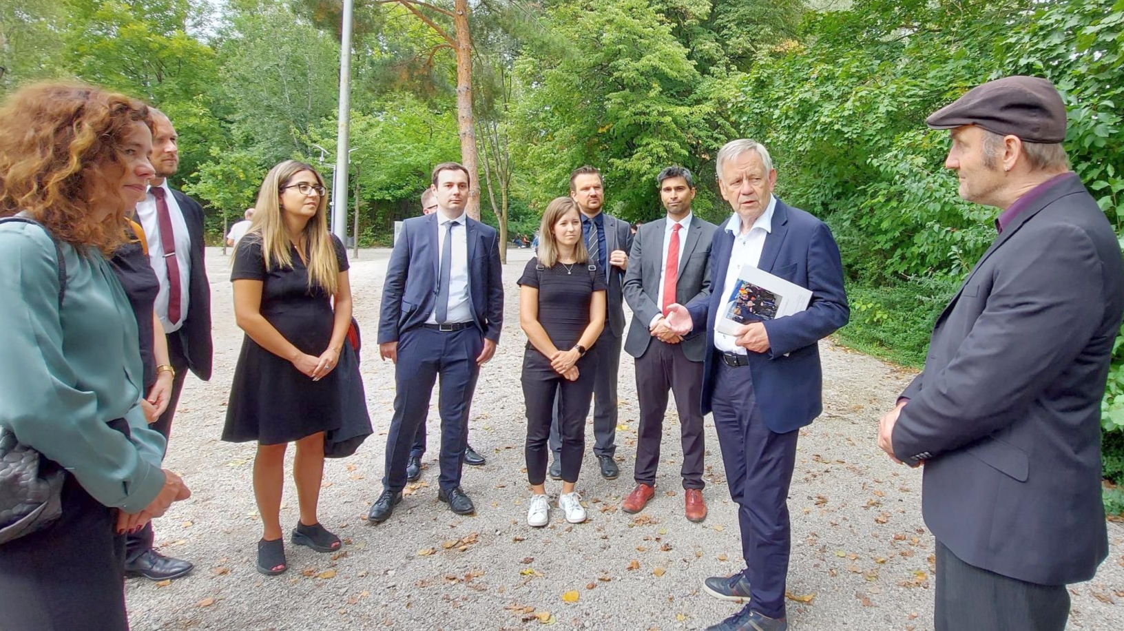 Elisa Valentin sowie die Vertreterinnen und Vertreter der Jungen Transatlantiker zeigten sich bei der Kranzniederlegung am Internationalen Mahnmal deutlich bewegt. Auch der Eintrag in das Gästebuch der KZ-Gedenkstätte am Ende ihres Besuchs war für Valentin ein wichtiger Moment. Der Besuch der hohen Regierungsvertreterin war auf Einladung des Stiftungsdirektors und Ersten Vizepräsidenten des Bayerischen Landtags, Karl Freller, zustande gekommen.
