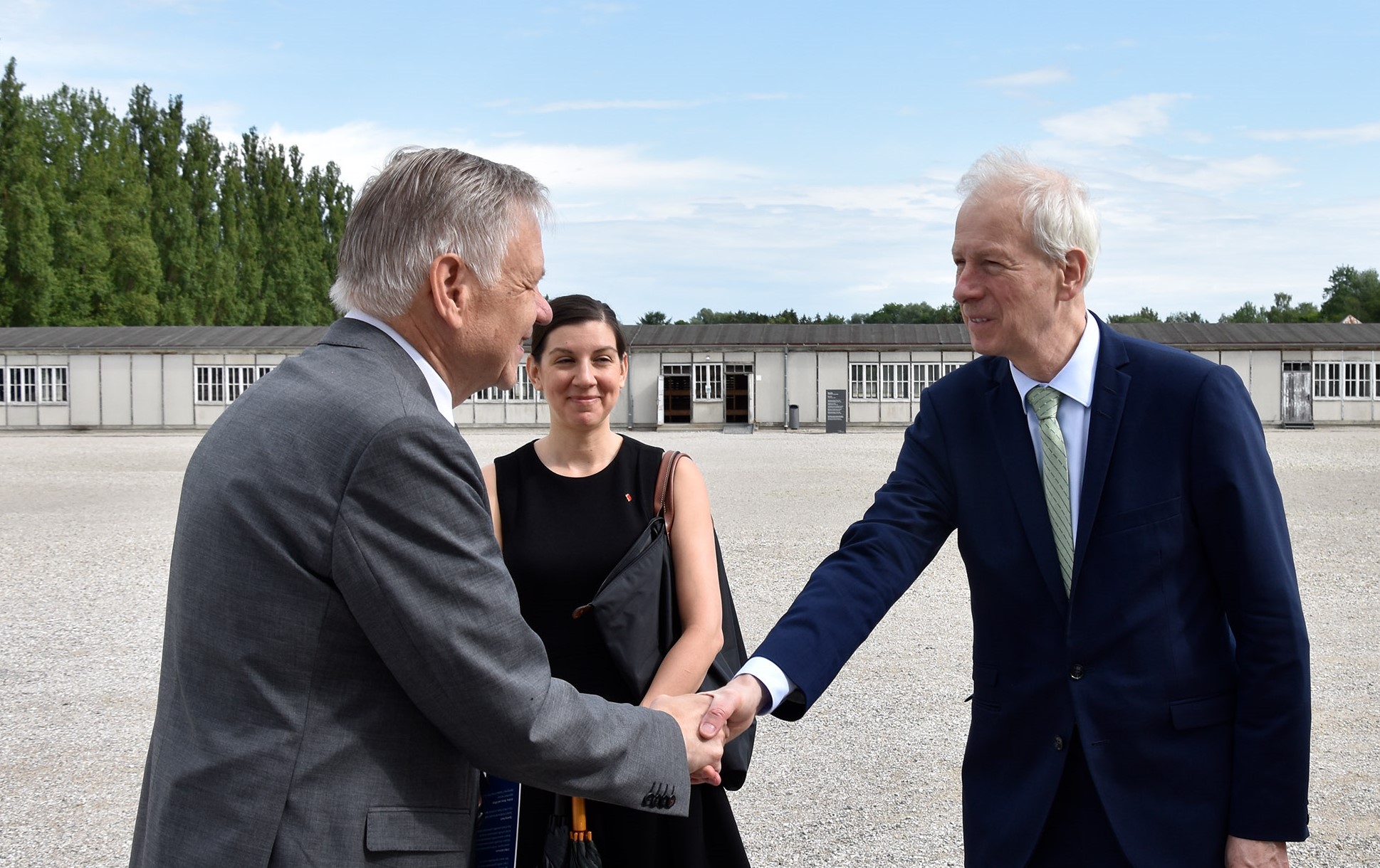 Der kanadische Botschafter in Deutschland, Stéphane Dion, besuchte heute gemeinsam mit Generalkonsul David Dunkerley und Vize-Konsulin Colleen McCrank die KZ-Gedenkstätte Dachau. Stiftungsdirektor Karl Freller begrüßte und begleitete die ausländische Delegation: „Wir freuen uns sehr über das Interesse und die Möglichkeit, heute gemeinsam mit den Befreiern von damals der Opfer zu gedenken.“
