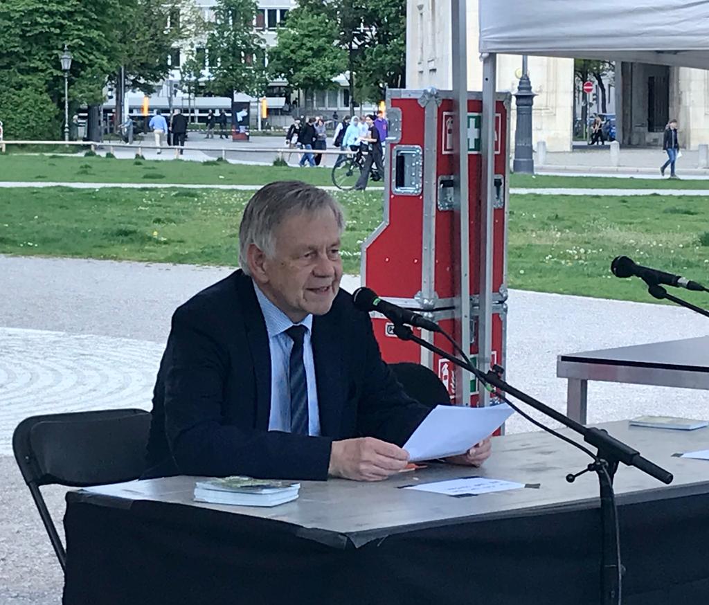 MÜNCHEN, 10. Mai 2022 – Am Dienstag, den 10. Mai 2022, findet auf dem Königsplatz in München wieder die alljährliche öffentliche Lesung „verbrannter Bücher“ in der Zeit von 10-18 Uhr statt. Organisator ist der bekannte Aktionskünstler Wolfram P. Kastner, der seit 1995 mit einem Brandfleck auf dem Rasen und einer Lesung an die Bücherverbrennung des Jahres 1933 dort erinnert. Karl Freller, Direktor der Stiftung Bayerische Gedenkstätten, wählte in diesem Jahr für seinen Lesebeitrag das Werk „Reisen in die Ukraine und nach Russland“ des jüdischen Autors Joseph Roth.