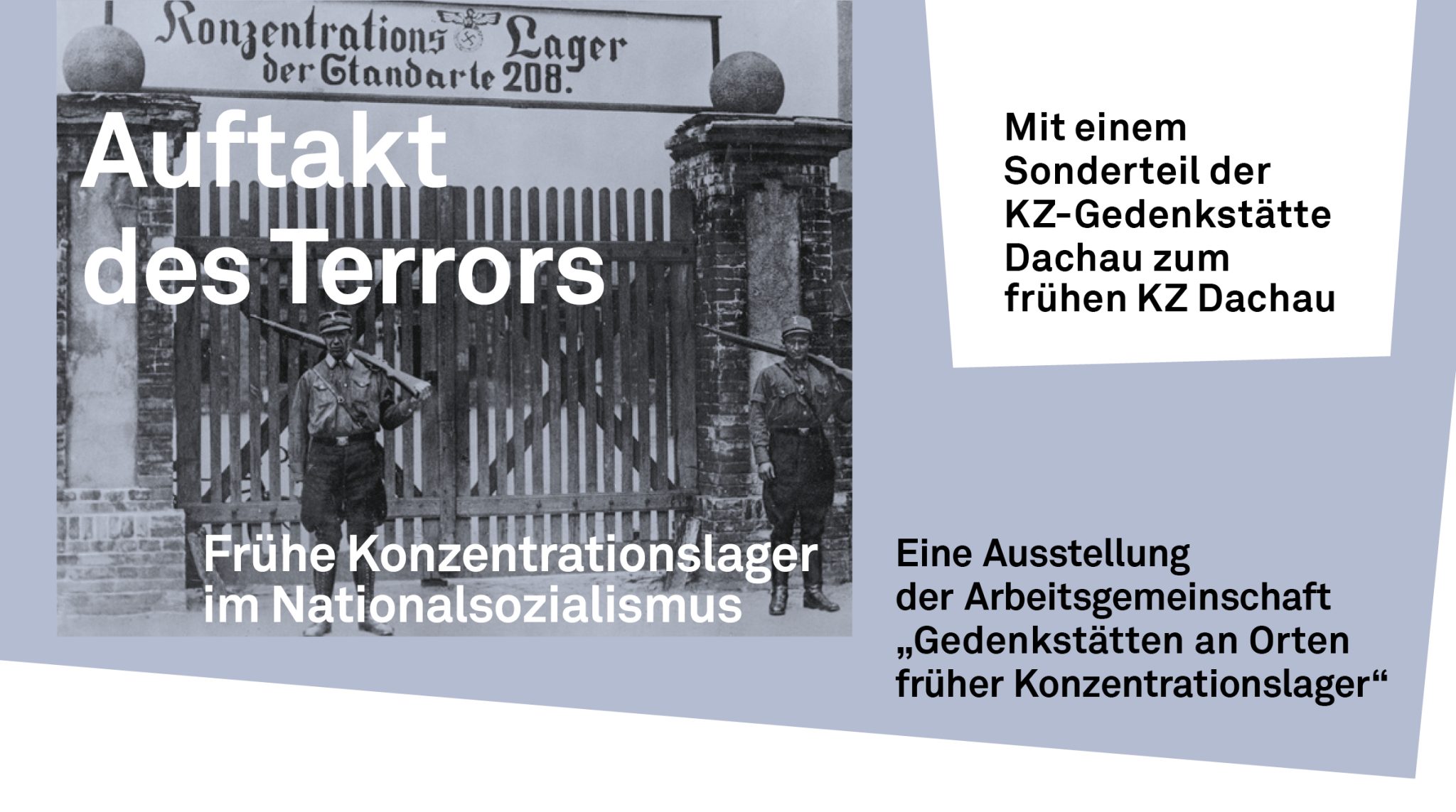 Welche Rolle und Funktion den frühen Konzentrationslagern in der Zeit des Nationalsozialismus zukam wird in der Ausstellung "Auftakt des Terrors" an elf Themenstationen beleuchtet. Anhand zahlreicher Biografien von Verfolgten zeigt sie auf, wie diese Lager zur Errichtung und Absicherung der nationalsozialistischen Herrschaft beitrugen. Den Ausgangspunkt bilden die 15 Lager, an die in den an der Ausstellung beteiligten Gedenkstätten erinnert wird. Sie stehen exemplarisch für die mehr als 90 frühen Konzentrationslager im Deutschen Reich. Ein Sonderteil stellt die Geschichte des frühen KZ Dachau als erstes bayerisches Konzentrationslager in den Fokus.