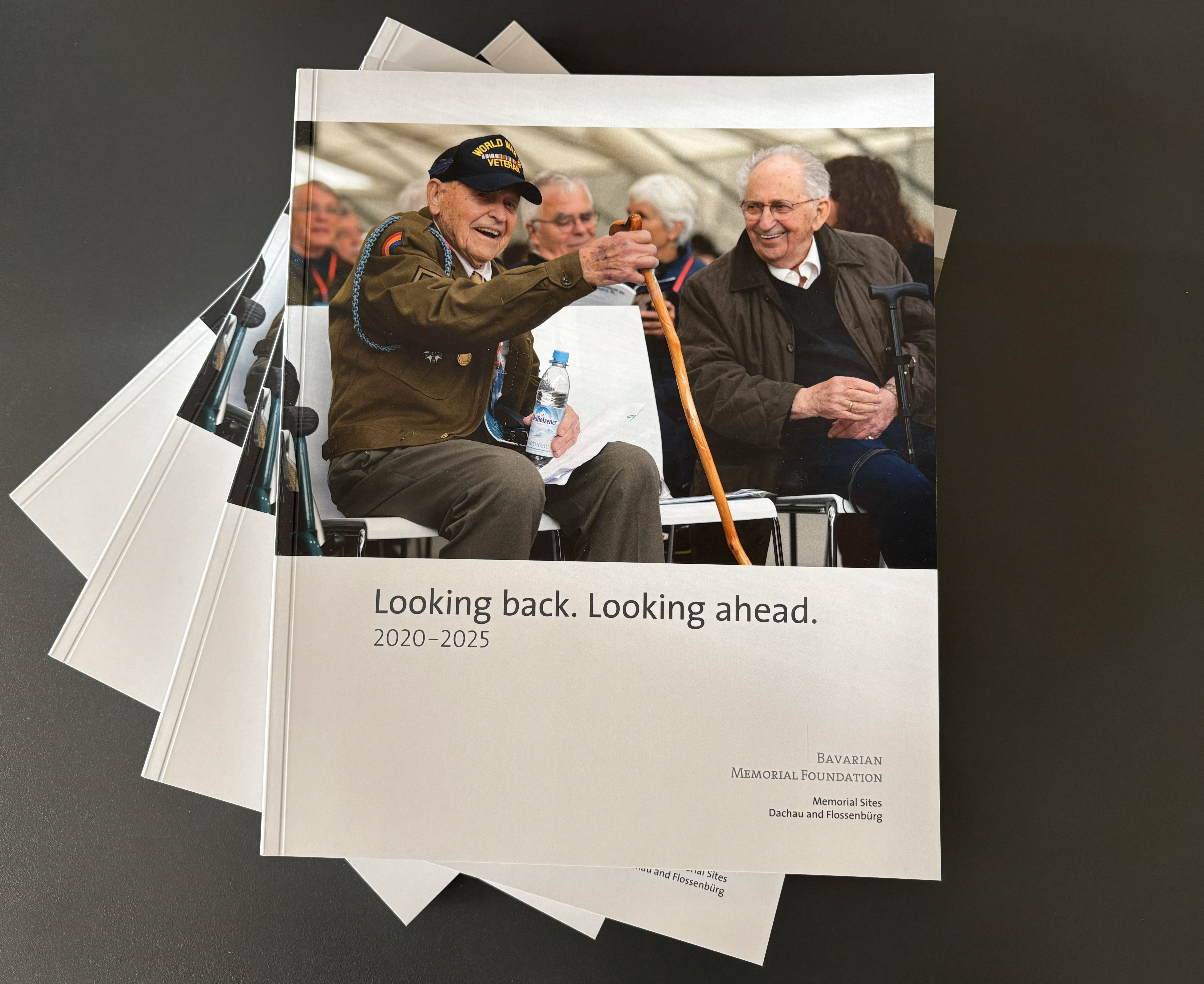 Mit der englischsprachigen Printausgabe der Stiftungsbroschüre „Looking back, Looking ahead. 2020-2025“ bietet die Stiftung Bayerische Gedenkstätten jetzt auch einem internationalen Publikum die Möglichkeit, einen Einblick in die Stiftungsarbeit zu erhalten – mit Fotografien zu allen relevanten Veranstaltungen, Stimmen von Holocaust-Überlebenden und Nachfahren, ausgewählten Reden aus Politik, Gesellschaft und Religion sowie Einblicken in die Bildungs- und Ausstellungsarbeit.