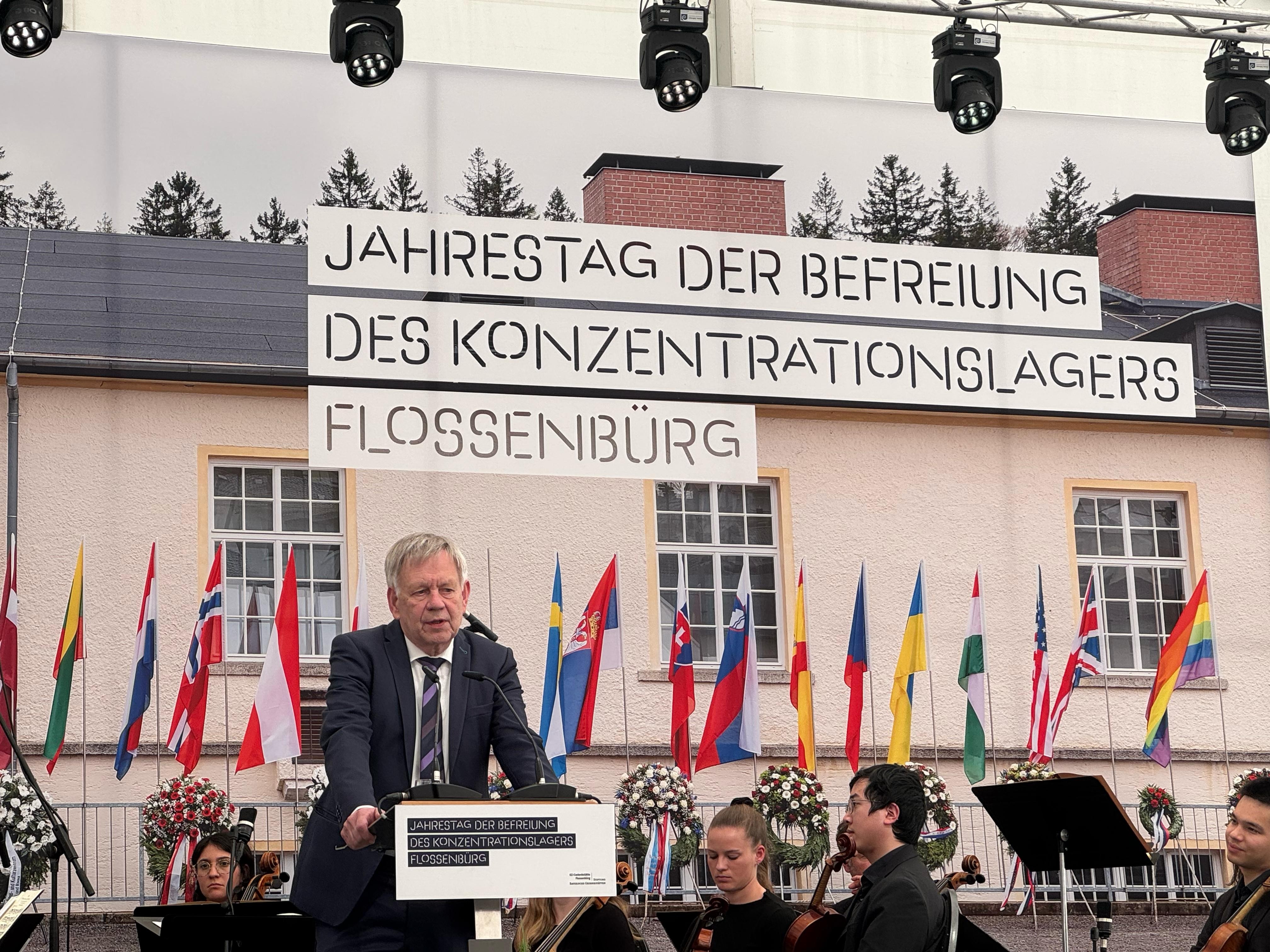 Inspiriert durch die Redebeiträge seiner Vorredner, entschied sich Stiftungsdirektor Karl Freller spontan für eine frei gehaltene Rede, um damit auch seinen Gefühlen authentischer Ausdruck verleihen zu können. Er betonte, dass das Gedenken und das Versprechen „Nie wieder“ keine leeren Floskeln bleiben dürften. „Gerade heute, in Zeiten von Krieg und Angriffen auf die Demokratie, sind wir alle gefordert, die Stimmen der Überlebenden weiterzutragen und für Menschenwürde und Freiheit einzustehen. Flossenbürg mahnt uns, wachsam zu bleiben – für eine Zukunft ohne Ausgrenzung und Hass.“ Die Rede kann hier abgerufen werden und unter cHJlc3NlQHN0YmcuYmF5ZXJuLmRl angefragt werden.